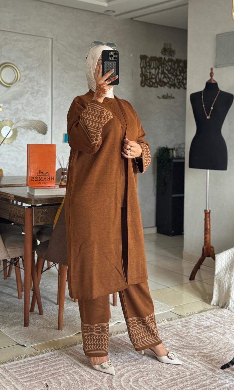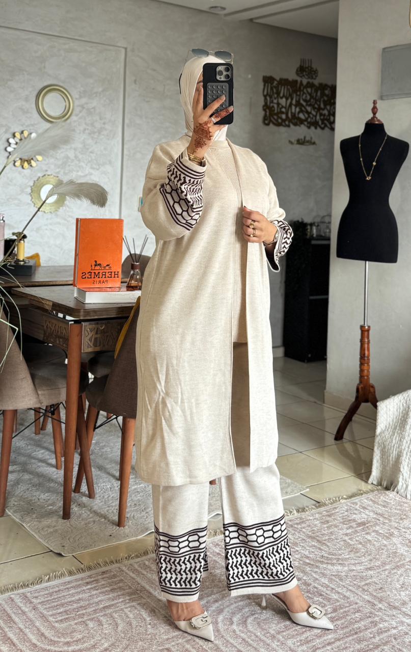 هاد الأنصومبل 3 بياس بحلة جديدة مختلفة 🤩 كيجمع بين الكاب الطويل 👗، السروال العريض الناعم 👖، والجيلي الصوفي 🧣، فتصميم تركي متميز وجودة عالية مضمونة 🔥. الطقم متوفر بألوان متنوعة 🎨 (ماريون، غري، نوار، بيج، بلان كايس، غرونا) وبمقاسات M، L، XL، XXL، XXXL. مع التوصيل المجاني 🚚 والدفع عند التسليم 💳،🌟. إذا كنتي كتقلب على شي حاجة مريحة وأنيقة، هاد الأنصومبل هو الحل المثالي ليك!